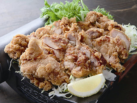 山賊焼きは、鶏のももやむねの一枚肉を、ニンニク、ショウガなどが入ったしょうゆベースのたれに漬け込み、かたくり粉をまぶして油で揚げて作ります。名前の由来は諸説あり、「山賊は人から物を取り上げる」→「取り上げる」→「鶏(を)揚げる」からきているとも言われています。